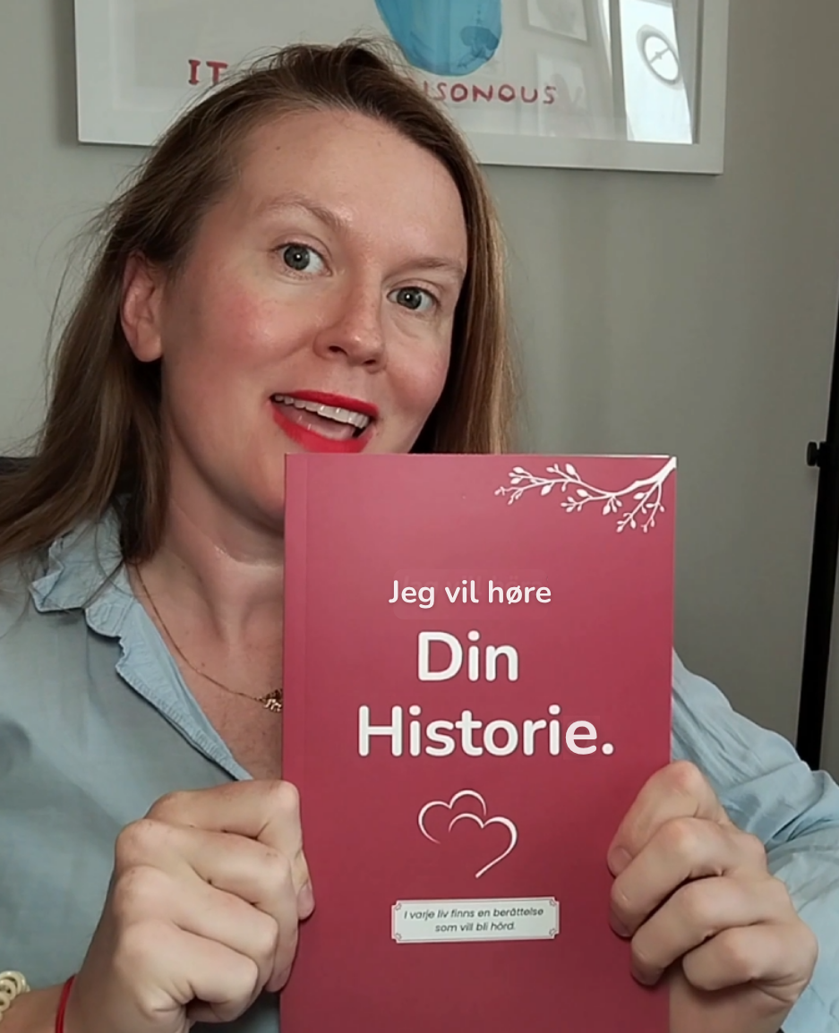 "Jeg Vil Høre Din Historie" er en smuk mindebog fyldt med spørgsmål, der hjælper dem du holder af med at huske, skrive ned og dele deres liv med dig.